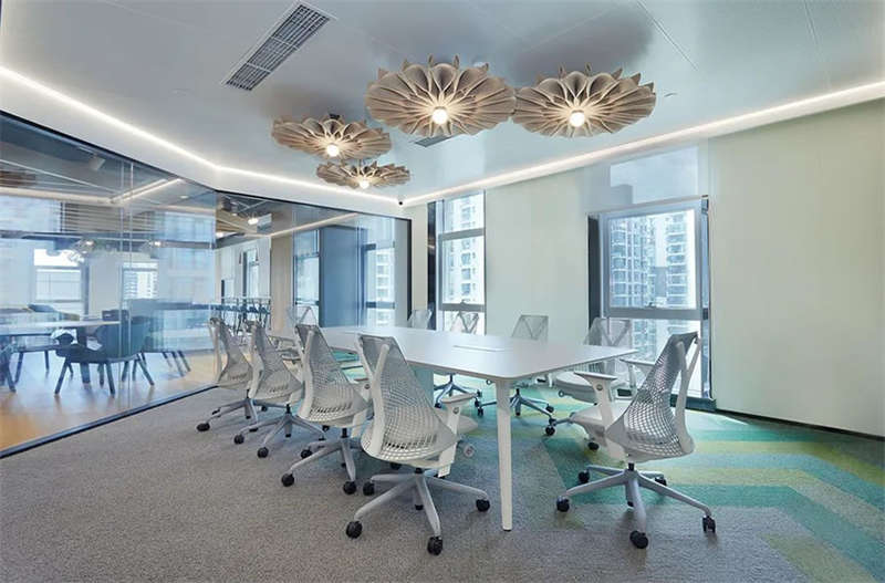 在空間規(guī)劃設(shè)計(jì)上,進(jìn)行了動(dòng)靜分區(qū),并打破了原有的動(dòng)線,路線上進(jìn)行了延伸、切角設(shè)計(jì)。在規(guī)劃各個(gè)功能空間中,充分考慮到建筑外光線與景觀的因素,將最好的光線位置留作員工咖啡交流及健身區(qū),將最好的視野區(qū)域作為總部接待大會(huì)議室。充分利用自然光,向員工傳遞正能量,其中亮點(diǎn)是每一個(gè)部門之間都設(shè)計(jì)了開(kāi)放或半通透的多功能交流區(qū)域。讓員工參與互動(dòng)活動(dòng)、討論或組織公司活動(dòng),這種輔助辦公空間充足的情況下,有助于緩解員工工作中的所有壓力,幫助他們度過(guò)閑暇時(shí)光。