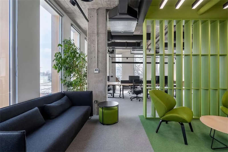 辦公室從上到下都進(jìn)行了翻新,以創(chuàng)建一個(gè)支持混合工作模式的辦公環(huán)境,提供更多的互動(dòng)協(xié)作和工作場景選擇,但仍舊有著大家所熟悉的家園氛圍。大膽的用色,讓辦公室有著色彩斑斕的公園般的氛圍,既愜意又舒適,同時(shí)充滿趣味性。這樣的設(shè)計(jì)手法旨在通過色彩和自然的平衡,塑造一個(gè)簡約凝練的辦公空間。