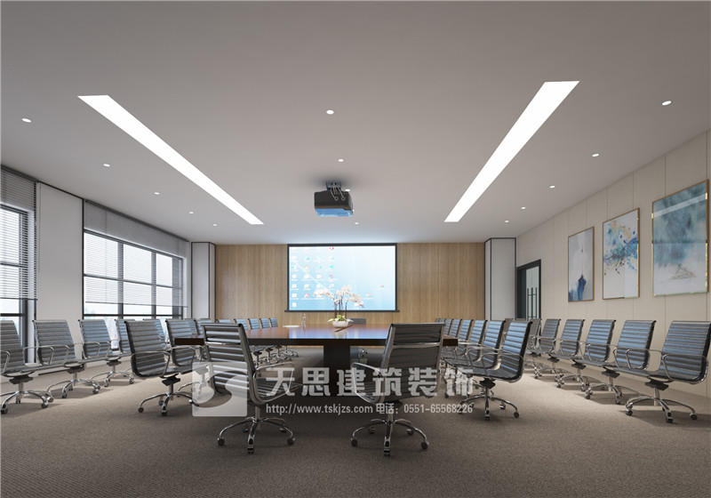 設計師在會議室設計的時候,采用從內向外擴張的方式對空間進行設計,以中線向外部空間進行拓展,這樣的設計可以將空間進行合理的劃分與運用。