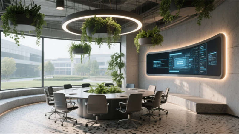空間摒棄傳統(tǒng)隔斷,運用通透玻璃與可移動裝置實現(xiàn)功能轉(zhuǎn)換,陽光透過智能窗控系統(tǒng)灑入每個角落。材質(zhì)與光影的精心編排,構(gòu)建出兼具高效協(xié)作與人文關(guān)懷的現(xiàn)代辦公生態(tài),詮釋創(chuàng)新企業(yè)的精神內(nèi)核。