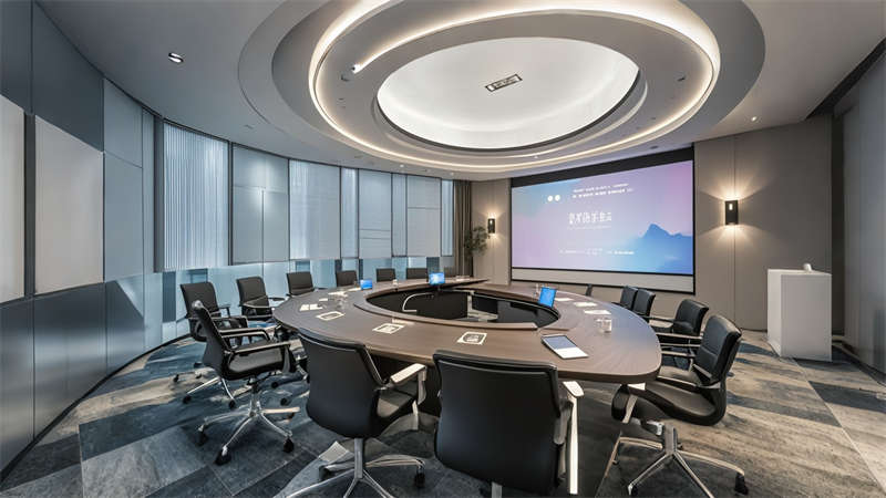 本 7000㎡辦公樓設計采用 ' 高效生態辦公 ' 理念,整體以銀灰、原木、企業藍為主色調。前廳通過 6 米挑高空間與動態光影塑造企業形象,開放式辦公區采用模數化設計實現靈活重組。智能控制系統覆蓋 85% 區域,會議空間配備物聯網設備實現遠程協作。生態設計方面,室內外綠化率達 30%,采用 Low-E 玻璃幕墻節約能耗。動線規劃上,通過核心筒輻射式布局,實現各部門 5 分鐘可達。軟裝選用 A 級防火材料,家具符合人體工學標準,照明系統達到 EN12464-1 標準。特別在聲學處理上,關鍵區域 STC 評級達 50 以上,打造舒適辦公環境。