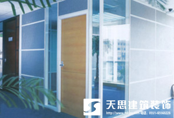 從專業(yè)角度來講玻璃隔斷墻因稱為透光模塊隔斷墻,玻璃隔斷中又分單面邊置、單面中置、雙面、雙面帶橫檔、雙面內(nèi)置百葉簾等多種方式。在玻璃隔斷墻的安裝中,安徽天思建筑辦公室裝修設計公司考慮到使用功能的不同,做如下設計建議: