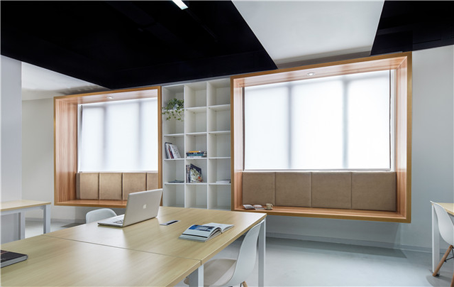 在78平空間內布置20個工位、茶水間、會議室和一個獨立辦公室并不容易,設計師在平面功能最大化,營造豐富的灰空間,消除辦公空間以往嚴肅緊張的固有印象。黑白極簡的設計語言在節(jié)省造價的同時完美契合了IT公司的現(xiàn)代感與科技感,而木質的飄窗是整個黑白空間的一抹暖色,在有限的面積中為員工營造了輕松的閱讀與交流空間。豐富的玻璃隔斷形成通透的空間,相互貫穿,模糊了空間屬性,從而削弱小空間帶來的局促感。