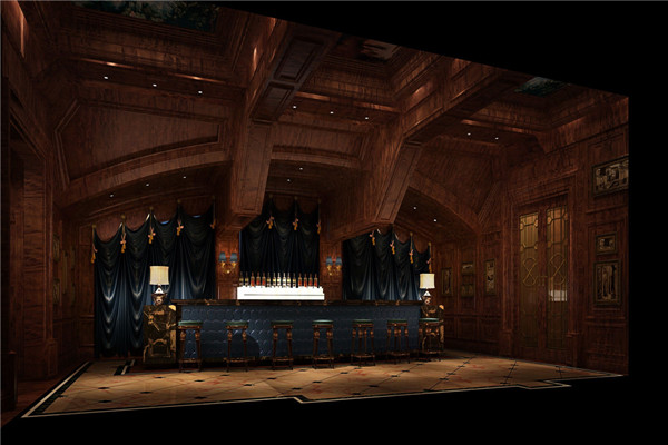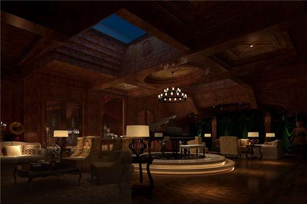 休閑區的酒室則效仿歐式經典酒窖的樣式,皮質沙發、半露天頂和大吊燈,在悠揚的鋼琴聲中享受酒精的熏陶。