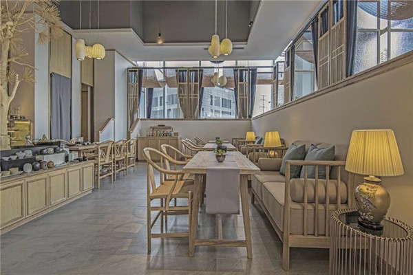 茶藝館的材質(zhì)在茶藝館的設(shè)計(jì)中,最常用的是那些有著靈性的、最為普通的自然材質(zhì),例如玻璃、涂料、青磚、石灰等,追求其表面的質(zhì)感和肌理變化。