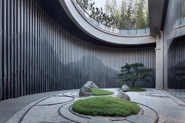 用色退歸自然,僅以石材與木材打造基調,線條錯落有序構筑成東方涵韻,為傳統建筑煥新,展現沉穩而睿智。