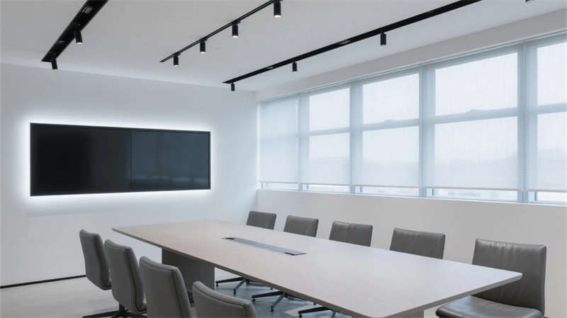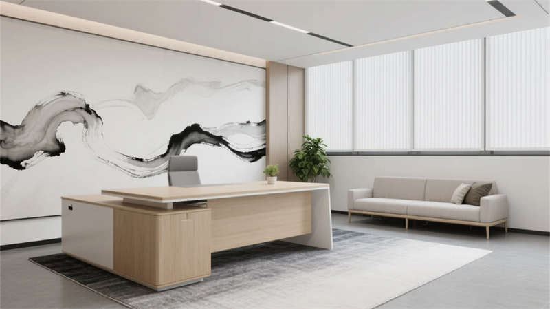該設(shè)計(jì)以現(xiàn)代簡(jiǎn)約語(yǔ)言重構(gòu)辦公空間秩序,通過(guò)光影與材質(zhì)的精妙平衡,營(yíng)造滁州商務(wù)美學(xué)的當(dāng)代樣本??臻g以淺木、暖灰與啞光白為主調(diào),線性光帶貫穿各區(qū)域,形成視覺連續(xù)性。開放辦公區(qū)借落地窗引入瑯琊山景光影,百葉簾調(diào)節(jié)自然與人工光的韻律;協(xié)作區(qū)弧形沙發(fā)與綠植墻柔化幾何理性,激發(fā)團(tuán)隊(duì)創(chuàng)造力。