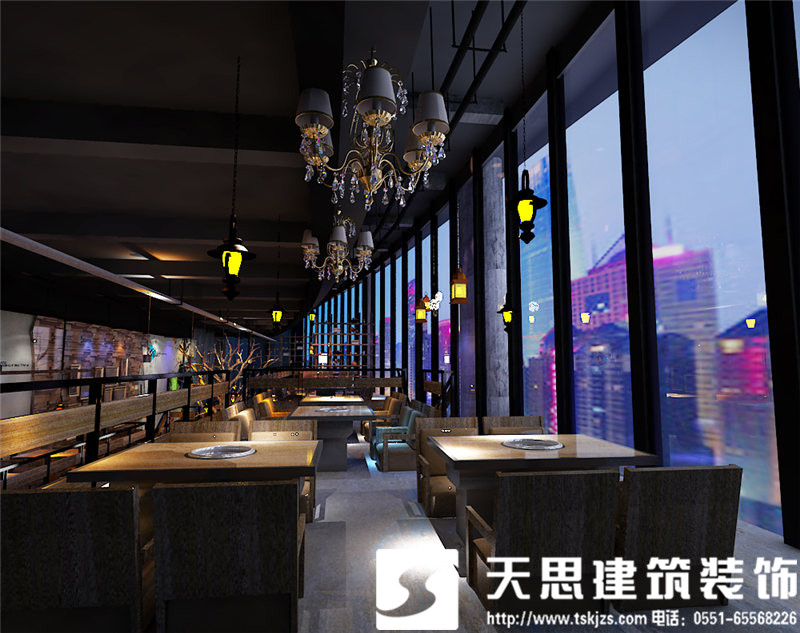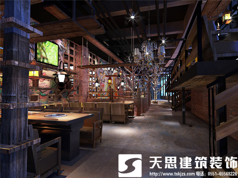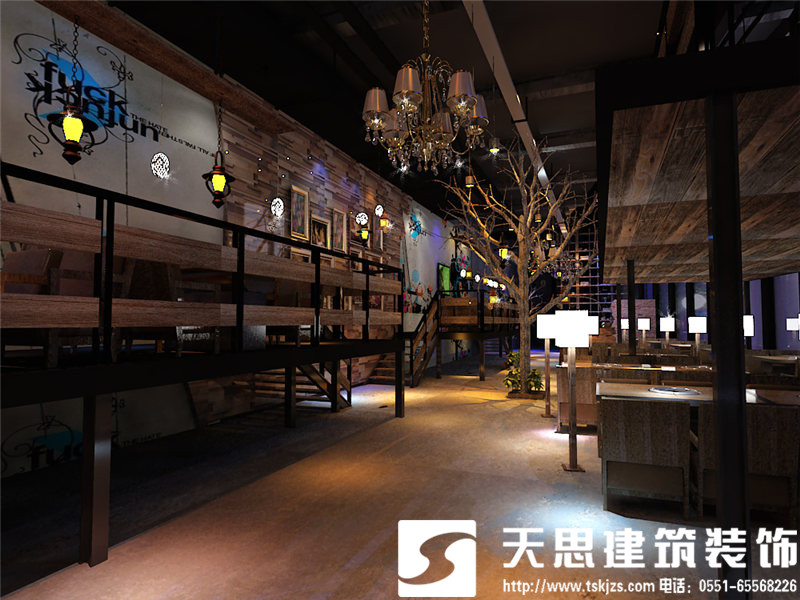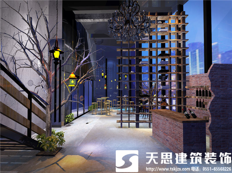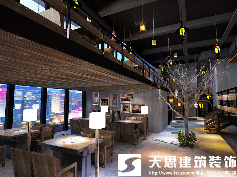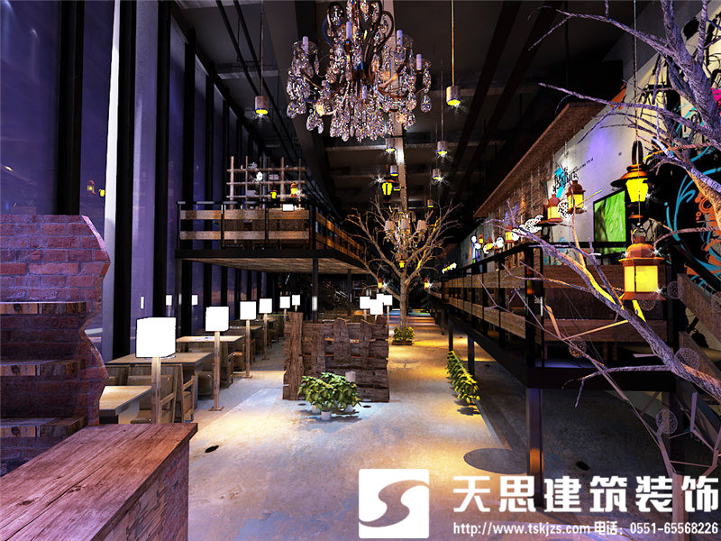 挑空的設(shè)計使一層的開敞空間簡潔而清晰,合理的區(qū)域劃分,凌空而起的二層餐飲區(qū),將挑空設(shè)計處理到最舒服的狀態(tài)。流光溢彩的琉璃燈讓簡約的設(shè)計愈發(fā)有了韻味,別致的風景畫懸掛于清水混凝土墻面上,讓單調(diào)的色澤有了藝術(shù)的張力。頂面、地面和墻面只做簡單處理,采用清水混凝土或原木板等自然材料,不添加任何多余的修飾,如此精簡的設(shè)計卻絲毫不減空間的魅力。