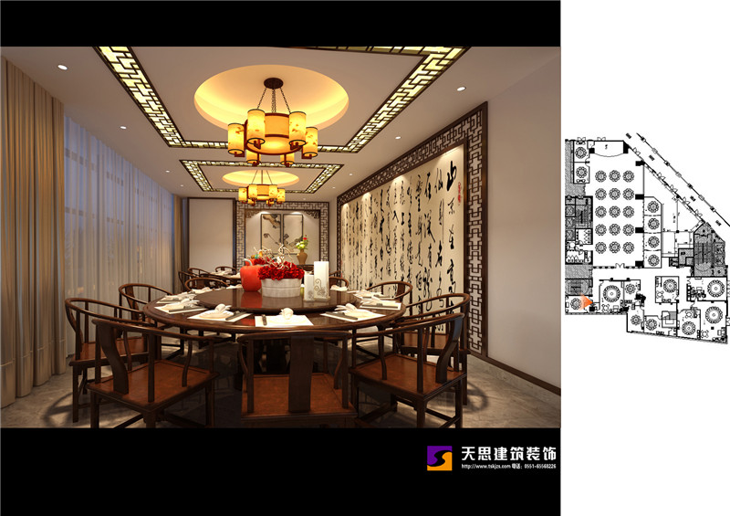 夢徽州酒店四樓火鍋店設計效果