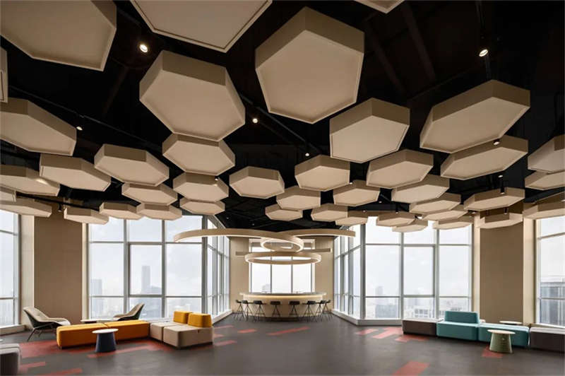 在輕松的輪廓下規整有序,通過選擇可循環利用的材料來減少廢物的產生,經由天花及木質線條的勾勒且連接空間,又與六邊形天花相輔相成,運用線與角規避各處尖銳轉折,柔和視覺,搭配木質的紋理質感,活波間亦不落俗,凈土之上雅致盡顯。