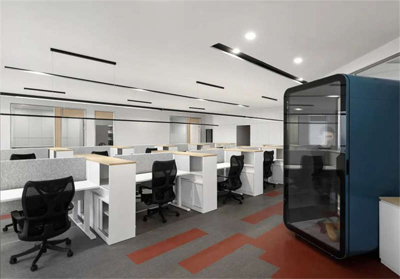 由于律師日常工作需要經常打電話的原因,設計師設置了4臺不同的顏色靜音倉,讓員工得以在安靜的環境中進行電話交談,同時不會干擾到其他同事辦公。