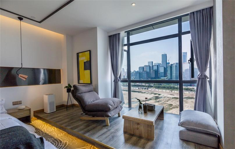 溫馨、小資、賓至如歸是本案設(shè)計的一條主線。大面積的墻體刷白,不做墻面大面積包裝,簡簡單單,讓空間更溫馨;配以部分水泥墻面做一個灰色系的穿插,讓空間在白的基礎(chǔ)上得以小范圍的格調(diào)提升,配上顏色稍微跳躍的畫及床品,視覺得以輕微的沖擊,不那么刺眼,更多的搭配原木木制品讓人更親近自然,讓客人感覺舒適,如歸家般放松。