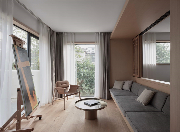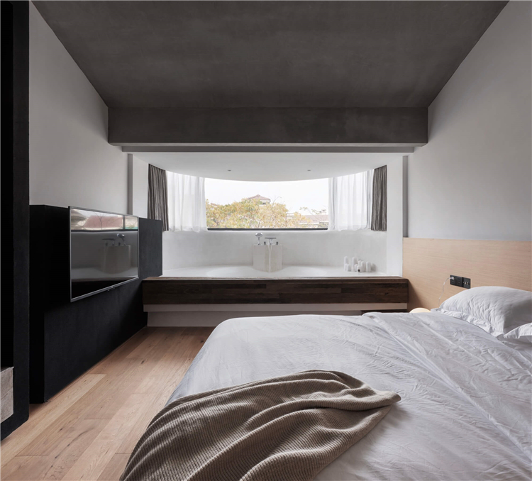設(shè)計(jì)師針對民宿的入住功能一共設(shè)計(jì)了八間不同布置風(fēng)格的客房,將入住功能布置與二三四層,重新規(guī)劃房間平面,擴(kuò)大每一個(gè)房間的衛(wèi)生間,增加落地窗,以此增加舒適度,同時(shí)為入住的客人創(chuàng)造趣味性的體驗(yàn)。在每一層中間以中島作為過渡,對應(yīng)每一個(gè)房間,即協(xié)調(diào)客房的動(dòng)線關(guān)系,又給每一位入客人提供便捷的交流空間。
