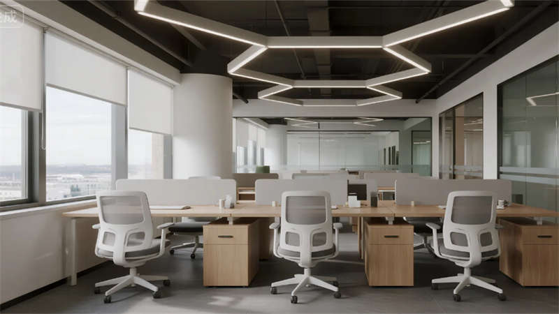 生產(chǎn)空間聚焦高效與潔凈,智能機械臂單元與模塊化管線系統(tǒng)滿足精密材料制造需求,冷色調(diào)照明強化科技嚴(yán)謹(jǐn)感。研發(fā)區(qū)域突破傳統(tǒng)廠房格局,落地窗引入自然光與園區(qū)景觀,垂直綠墻凈化空氣的同時激發(fā)創(chuàng)造力。