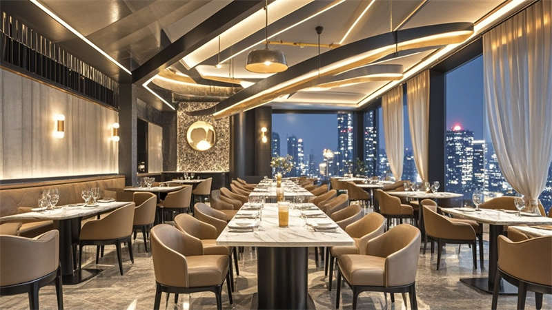 本2000平現代簡約風格酒店設計以'城市綠洲'為核心理念,通過流線型空間布局構建高效動線。大堂采用懸浮式水晶燈與淺灰大理石地面形成視覺焦點,金屬與木質的冷暖對比提升空間質感。客房區運用深藍與淺灰的撞色搭配,配合智能照明系統實現多場景模式切換。公共區域大量運用無框玻璃隔斷,保持空間通透性的同時實現功能分區。色彩體系以米白為基底,點綴深胡桃木與香檳金,局部運用幾何紋樣增強設計感。材料選擇注重環保與耐用性,石材、金屬與吸音材質的組合兼顧美觀與實用。燈光設計采用多層次照明系統,筒燈、燈帶與裝飾照明相結合,營造舒適光環境。各功能區域通過統一的材質語言和色彩邏輯保持整體協調,同時根據不同使用需求進行個性化設計,如會議室配備移動隔斷實現靈活分隔,健身中心采用防滑橡膠地板等專業處理