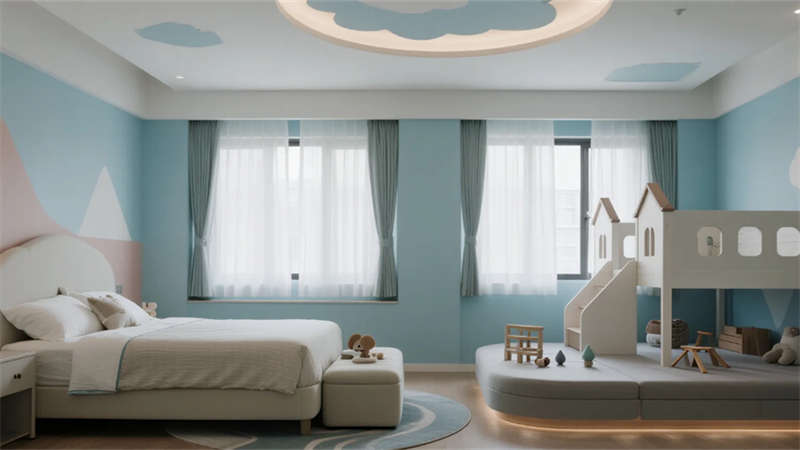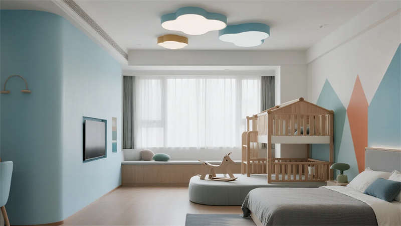 公共區(qū)域強(qiáng)調(diào)功能與美學(xué)的平衡:開放式游樂區(qū)釋放孩子天性,閱讀角的樹洞書架激發(fā)想象力,手工坊的彩虹收納系統(tǒng)培養(yǎng)創(chuàng)造力。戶外庭院融入沙坑與綠植,讓自然成為游戲場(chǎng);夜晚的星空影音室則轉(zhuǎn)為家庭溫馨劇場(chǎng)。整體設(shè)計(jì)通過(guò)流動(dòng)的空間布局,讓家長(zhǎng)與孩子在簡(jiǎn)約美學(xué)中共享親密時(shí)光,重新定義合肥親子度假的體驗(yàn)方式。