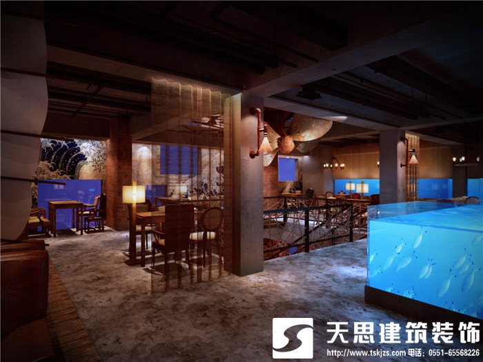 銅須水族主題會(huì)所,空間造型大氣磅礴,初入室內(nèi)即被粗獷自然的設(shè)計(jì)所震撼。給人一種無(wú)限擴(kuò)張的空間力量。空間材料和色彩的運(yùn)用細(xì)膩而大膽,情節(jié)化的場(chǎng)景布置與戲劇性的張力設(shè)計(jì)營(yíng)造出豐富的視覺享受。
