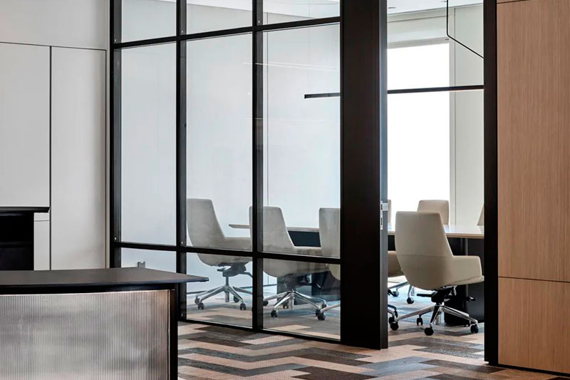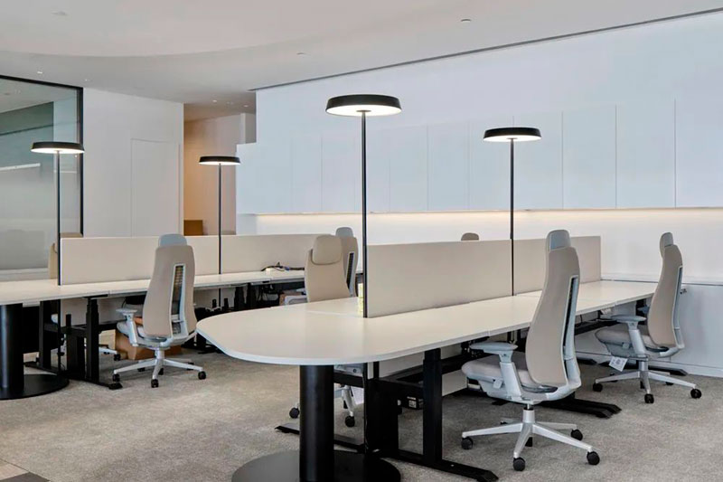 后場辦公區(qū)延續(xù)了前廳的辦公理念,結(jié)合不同功能形式的會議室、電話間,提供了多選擇的工作模式,簡潔而高效。大量可再生面料的墻飾、可回收吸音板和仿生苔蘚的應(yīng)用,豐滿了視覺層次并極大提升了空間的聲學(xué)效果。