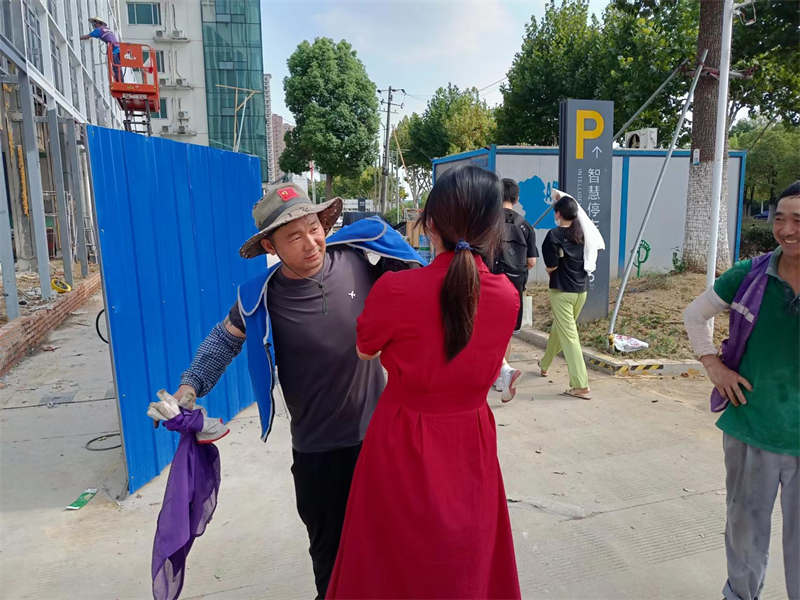 一到項目工地,就看見了一線工作者在40度酷暑的天氣下勞作,每一滴汗水都是辛苦工作的象征。胡主管將公司領導買的礦泉水,冰袋和安全作業馬甲都搬了下來,招呼一線工作者過來喝水休息一會。在慰問施工勞務作業人員時,她強調,要多方舉措防暑降溫,保證高溫作業條件下員工的身體健康;要科學安排作息時間,避免疲勞施工,保證安全。