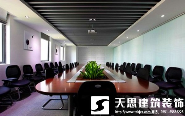 在該800平辦公室裝修項目中,其室內(nèi)大會議室最具形象,室內(nèi)有一面形象墻,采用白色logo元素來強調(diào)出其簡潔與創(chuàng)意,增加了企業(yè)的文化理念的傳播。而在客戶服務區(qū),采用了三個弧形造型辦公位,天花與桌面相互應,三個弧形緊連相接,體現(xiàn)了企業(yè)文化的團結(jié)一致,服務意識嚴謹。