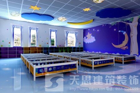 幼兒園寢室墻面的設計,要注意的問題有很多,最重要的問題就是安全問題,要是雙層的話,不能設置的太高,一層的話,床也不能太高。在裝飾方面,要注意墻面最好粉刷成綠色或者粉色;在搭配上,用一點動畫人物,這樣營造出一種溫馨的氛圍。另外,床位不能擺放的太密集,要留有足夠寬闊的過道,便于緊急疏散。還有,幼兒園寢室墻面的設計,還要根據孩子們的具體情況進行搭配裝飾,大、中、小班的年齡不同,搭配裝飾的效果和內容也應該不同,這樣更有利于孩子們的成長及發展。