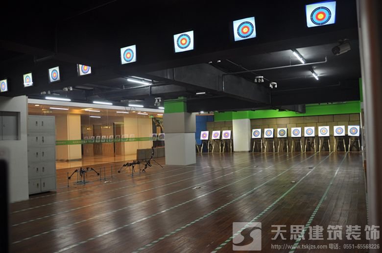 射擊場的設計比較貼近自然,可以使人們獲得良好的設計體驗。射擊場地面上鋪著綠色的地毯和一些假的草坪。盡頭的墻壁上則分布著一些綠色藤蔓和枝葉,設計清新又不落俗套。在射手站的射擊地面上則鋪著棕色的木板,平整且光滑,木質的高臺可以使射手保持在規(guī)范距離之內。