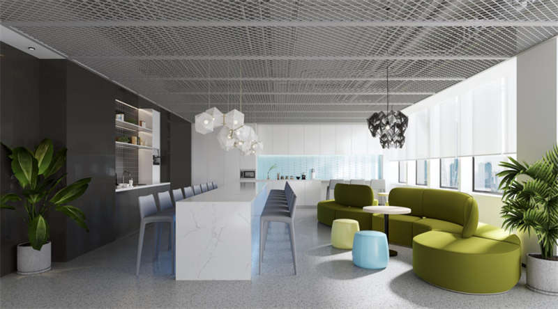 一般用在過道多用,但也有被采用于開放式辦公室吊頂和員工活動區域。這種材料通常是用鋁合金制造,飾面多為噴涂或烤漆,色彩品種較多,選擇境地很大,網格的大小可根據需求定做。