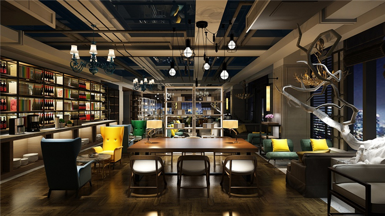 作為中國八大建筑流派之一的川西民居,也給設計師帶來靈感,借用傳統建筑的坡式屋頂和舍去繁復的中式雕花等,營造出酒店清新淡雅的古典氛圍,表達巴蜀之地簡潔流暢的婉約美。在配套的漫咖啡空間,設計師弱化了中式風格,突出現代1oft工業風,結合色彩豐富的現代家居軟裝,打造出一個時尚前衛的舒適環境,使酒店更能吸引心態年輕的消費者群體。