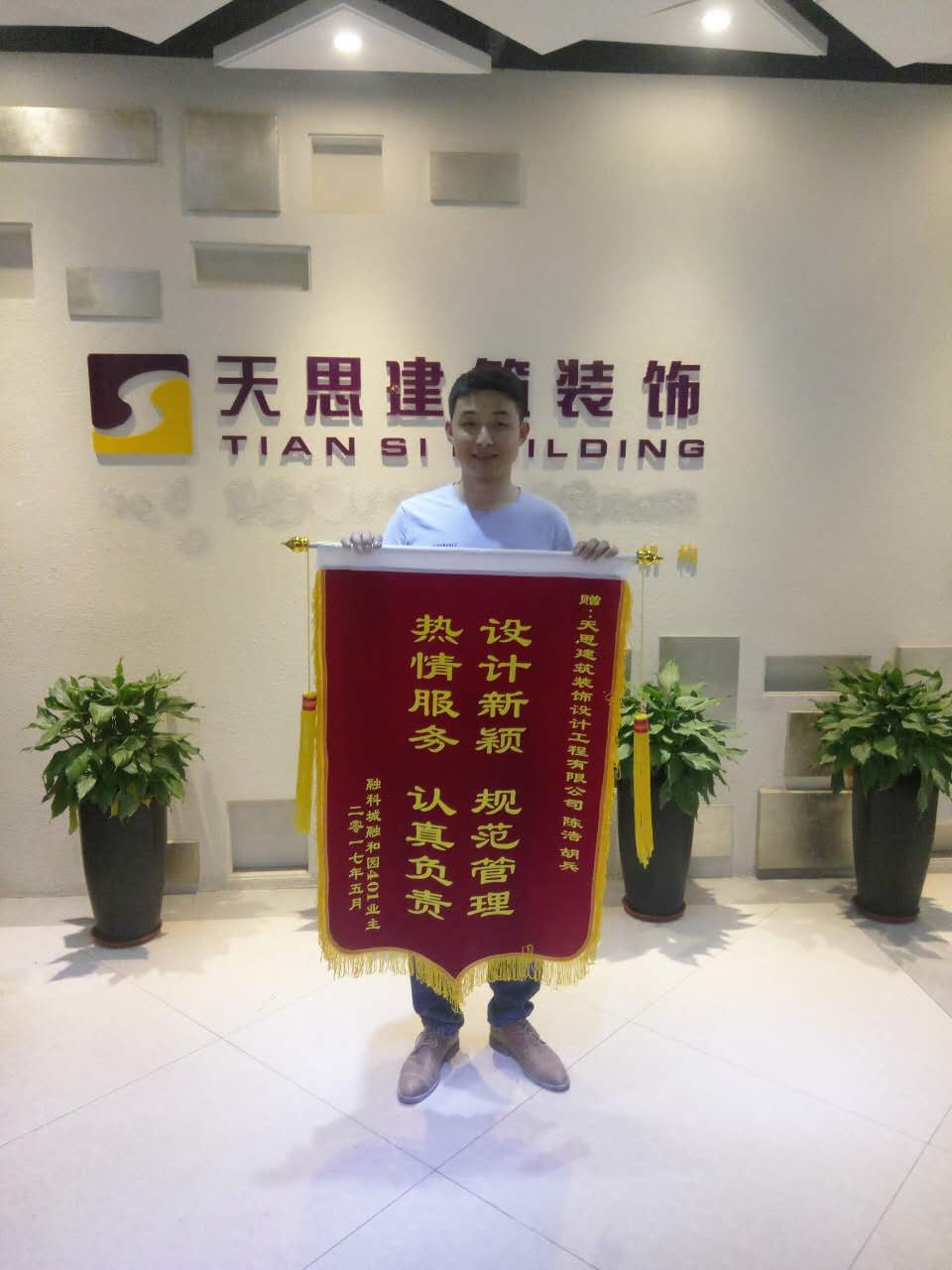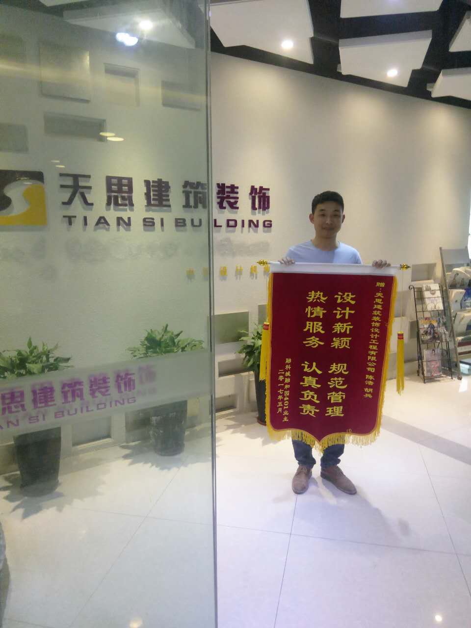 “服務(wù)熱情素質(zhì)好,辦事認(rèn)真效率高”是業(yè)主對(duì)天思裝飾的肯定。一直以來(lái),天思裝飾的全體員工都盡力做好每一家的裝修工程,同時(shí),業(yè)主為天思裝飾送來(lái)錦旗,也讓我們很是感動(dòng)。