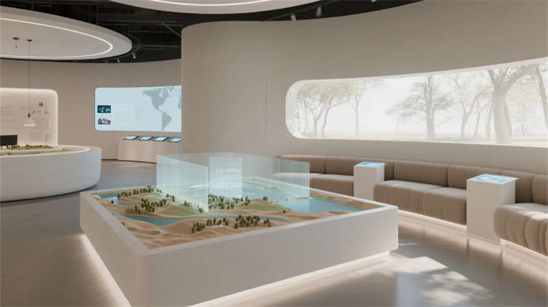 這座展廳以現代簡約風格為核心,打造流暢而富有張力的空間體驗。入口區以開放姿態迎接參觀者,核心展示區陳列創新展品,互動區通過科技裝置激發探索樂趣。多媒體區以視聽盛宴強化敘事,休息區則提供舒適角落促進交流,會議區靈活多變適應多樣需求。主題區巧妙融入本土特色,未來區以先鋒設計點燃靈感火花。整體設計中,簡潔線條與中性色調營造寧靜基調,高科技元素如數字屏和智能照明無縫融入,增強功能性與藝術感。空間動線自然引導,從喧囂到沉思,材質選用環保而溫暖,綠植點綴平衡科技冷峻。展廳不僅服務于展示,更成為啟發對話與思考的場所,每一功能區銜接緊密,共同編織一場關于未來的故事。在合肥這座活力之城,設計以包容姿態回應城市脈動,為公眾帶來沉浸式文化之旅。