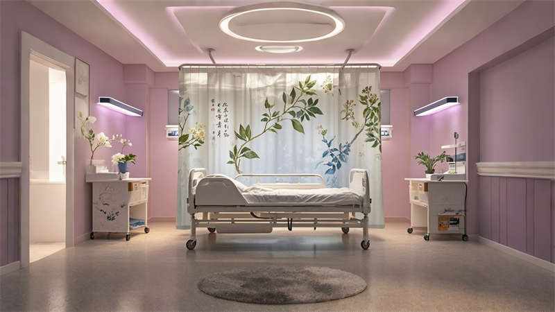 本2000平中醫(yī)院設(shè)計(jì)融合傳統(tǒng)中醫(yī)文化與現(xiàn)代醫(yī)療功能,采用 ' 療愈之境 ' 核心理念??臻g規(guī)劃采用 ' 回' 字形動(dòng)線,門診、診療、康復(fù)三大功能模塊環(huán)繞中央庭院布局。色彩體系以米白、淺灰為基底,點(diǎn)綴赭石、黛青等傳統(tǒng)中藥色彩,墻面肌理漆模擬紙張質(zhì)感呼應(yīng)古籍文獻(xiàn)。診療區(qū)域采用模塊化隔斷系統(tǒng),兼顧隱私與通風(fēng)需求。智能照明系統(tǒng)可模擬晝夜節(jié)律變化,候診區(qū)座椅集成無線充電功能。重點(diǎn)區(qū)域設(shè)置 AR 中醫(yī)文化互動(dòng)裝置,住院部走廊每 10 米設(shè)置中藥香薰擴(kuò)散點(diǎn)。材料選擇注重環(huán)保性與耐久性,地面采用防菌 PVC 卷材,墻面使用易清潔的納米涂層。整體設(shè)計(jì)通過現(xiàn)代設(shè)計(jì)語言詮釋中醫(yī) ' 天人合一 ' 理念,打造兼具專業(yè)醫(yī)療功能與人文關(guān)懷的現(xiàn)代化中醫(yī)院空間。